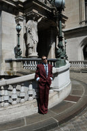 Cropped Trench Leather Jacket - Burgundy