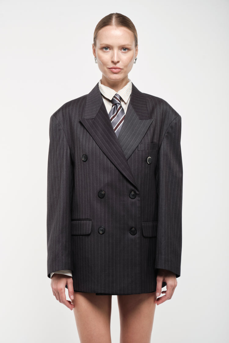 Double-Breasted Pinstripe Blazer
