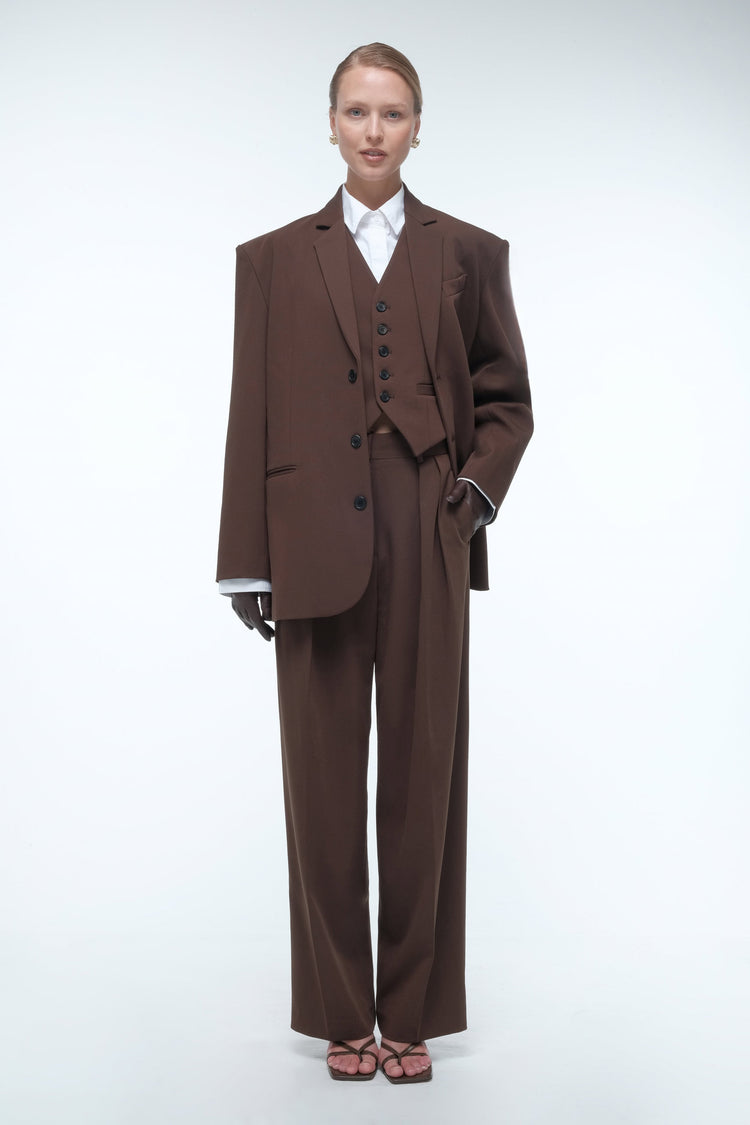 Relaxed tailoring is our calling card and this item captures the label’s low-key aesthetic. The blazer is designed to create a boxy silhouette. Featuring front button closure, notch lapels and enhanced by wide padded shoulders.