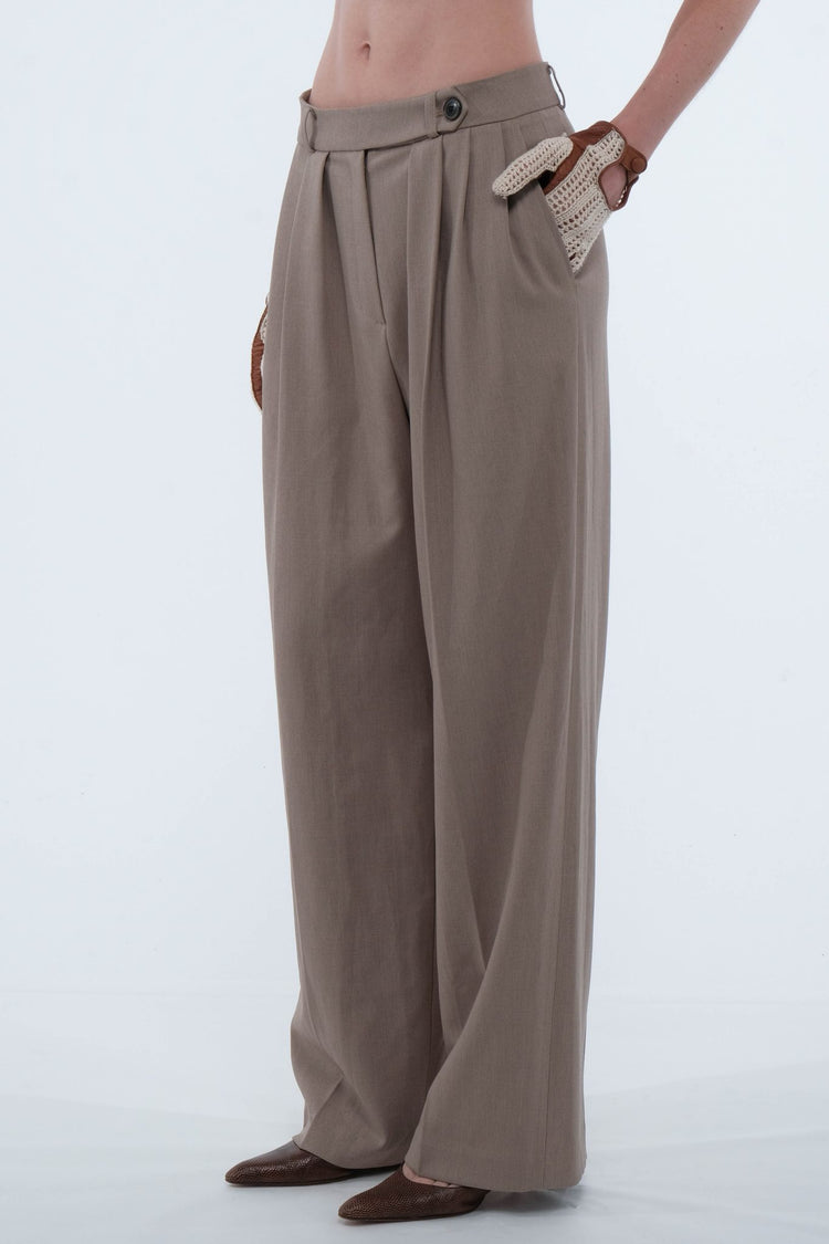 These menswear-inspired trousers bring on an empowering look when paired with the sculpted blazer for a full suit look. It’s pleated front design and off-centre button fastening exudes a vintage allure.