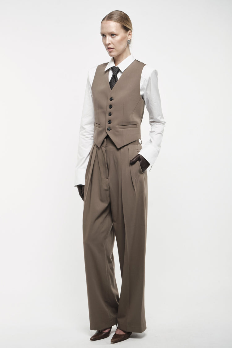 Created with the modern woman in the mind, these wide-leg suit trousers have been crafted with traditional design details. Featuring a neat front closure with belt loops, finished with pockets and pressed creases to keep the look sleek.